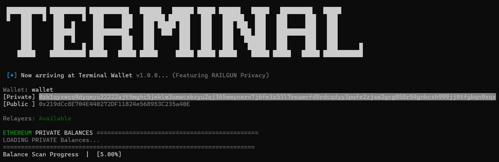 **You can now paste this address anywhere you like, including to** [**shield**](https://terminalwallet-cli.gitbook.io/terminal-wallet/transactions/shielding-assets) **funds.**